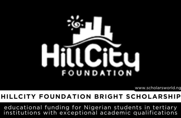 HillCity Foundation Bright Scholarship DetailsThe HillCity Foundation Bright Scholar Program offers a valuable opportunity for exceptional undergraduate students in Nigeria to receive financial support and pursue their academic aspirations.By meeting the specified eligibility criteria and submitting a compelling application, deserving candidates can access the resources they need to excel in their tertiary education journey.Apply now and take the first step towards a brighter future with the HillCity Foundation Bright Scholar Program!HillCity Foundation Bright Scholarship BenefitsThe HillCity Foundation Bright Scholarship will fund the full fees of your tuition as a registered undergraduate student if you are selected for the programme.Recipients will receive financial assistance towards their academic expenses at an accredited Nigerian university.Recipients will receive financial assistance towards their academic expenses at an accredited Nigerian university.Acceptance into the program is contingent upon a commitment to actively participate in the HillCity Foundation Mentorship Program, which provides guidance, support, and networking opportunities throughout your academic journey.
